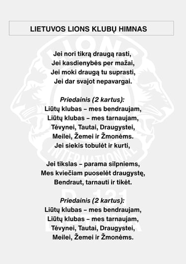 Būti LIONS nariu reiškia ne tik dalyvauti projektuose, bet ir tapti dalimi pasaulinės bendruomenės, kurią sieja humanizmas, pagarba ir noras daryti gera.