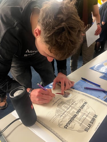 Buvo pristatyta Leo klubo valdyba, naujieji nariai davė priesaiką bei pasirašė steigimo dokumentus.